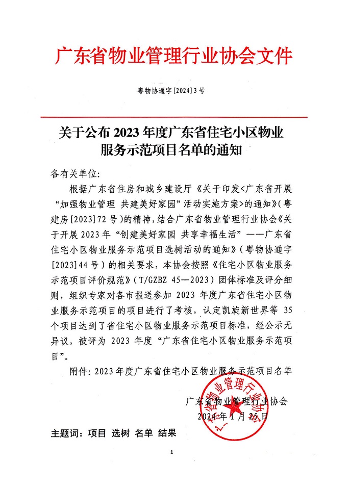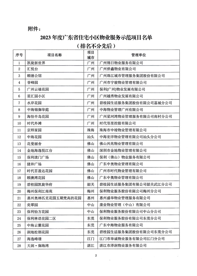 转发关于公布2023年度广东省住宅小区物业服务示范项目名单的通知